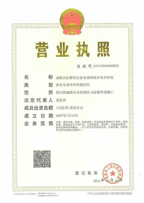 ? ? ? ? ? ? ??單位名稱:成都天府新區宗富水果種植專業合作社專業合作社